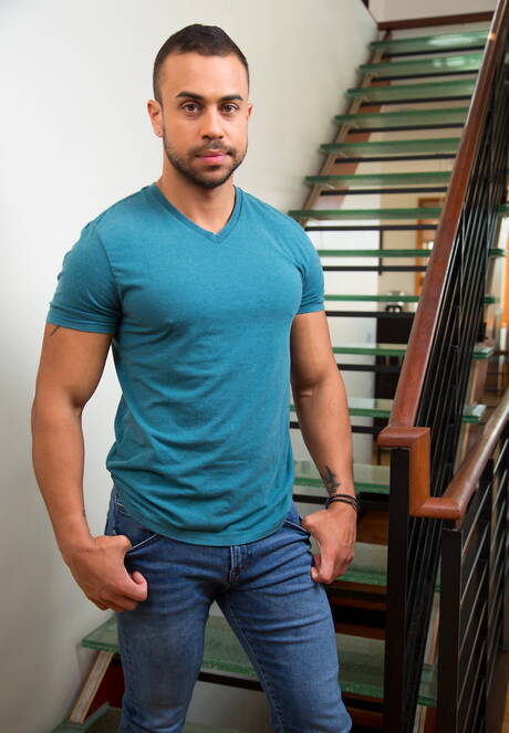 American strongman Mark Long and Julian Grey fuck after blowjob in kitchen