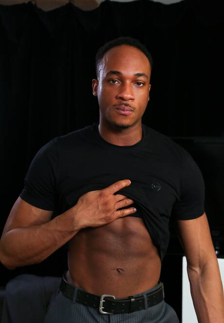 American strongman Ryan Russell and black hunky guy Trent King have a hot interracial sex