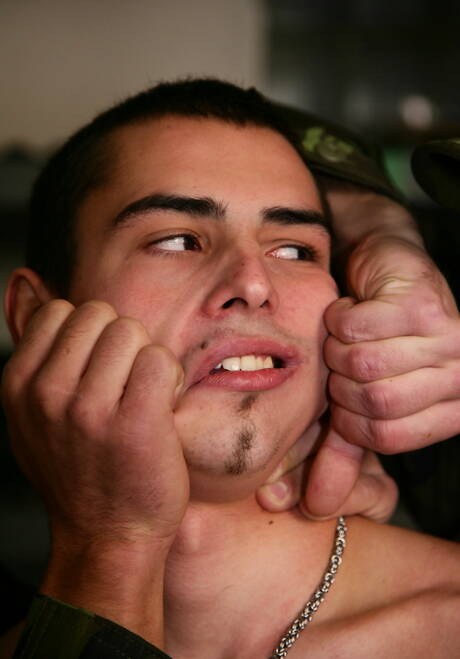American well-built Sergeant Miles and french hunk Valentin Amour masturbating with sex toy