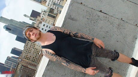 Beefy Rocky Blackwell jerk off outdoor