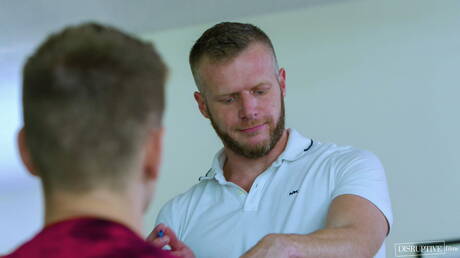 Black hunk Race Cooper and american beefcake Brian Bonds have a good interracial oral sex
