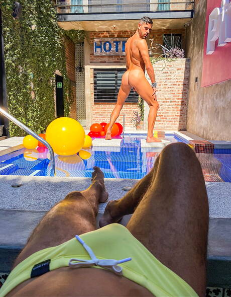 Brazilian hunk Bruno Bernal and english beefcake Gabriel Cross banged each other at pool