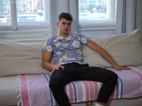 Czech beautiful boy Finn Harper undressing and showing nice ass