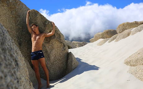 Czech hunk Hoyt Kogan shows a muscle body on beach