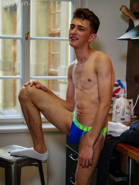 Czech young Antony Carter posing nude in kitchen