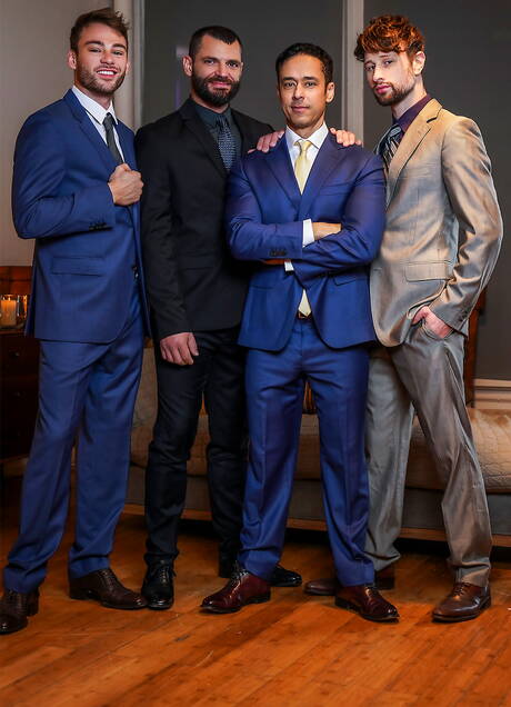Drew, Jake, Max Adonis, Rafael Alencar in male gangbang