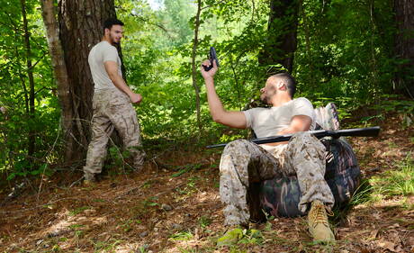 Famous americans, tough guy Jason Maddox and beefy Kaden Alexander have anal sex outdoor