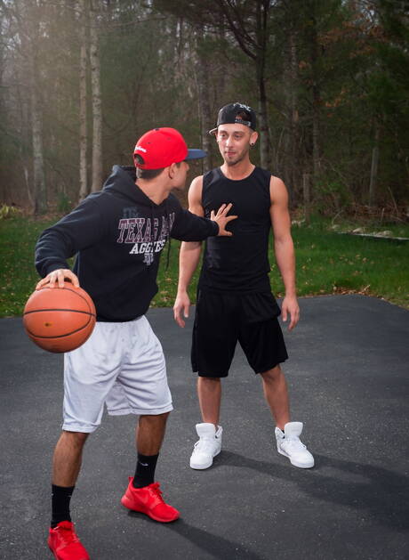 Famous americans, twink Damian Black and beefy Billie Ramos fuck ass after sucking at pool