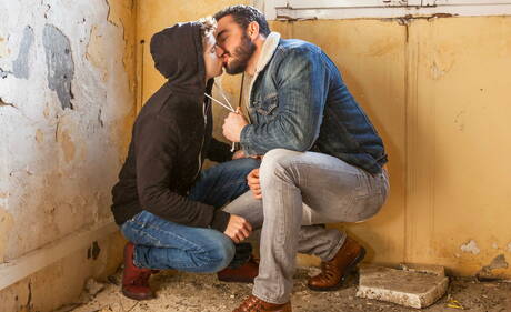 German well-built Jessy Ares and american strongman Will Braun drilling an ass