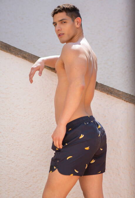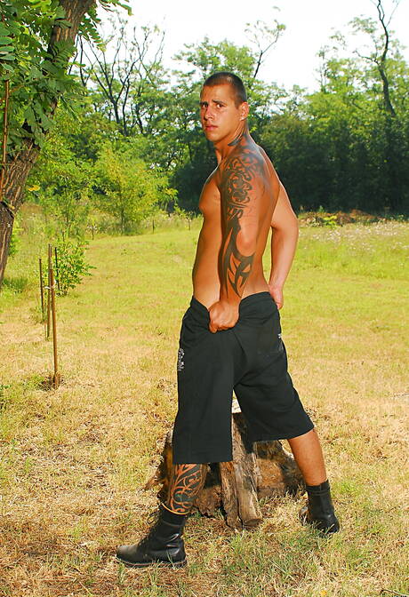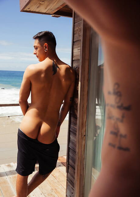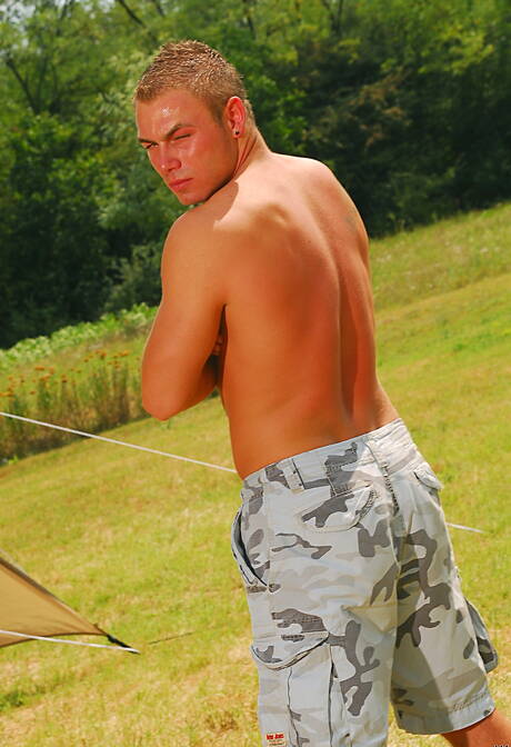 Hot american dudes beautiful boy Jarrod Lanvin and beefcake Serge Cavalli get naked and showing butt outside