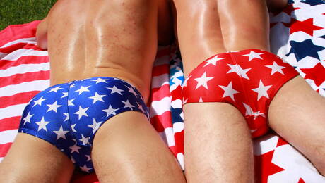Hot american dudes hairy stud Dylan Knight and young dude Vincent James in hot ass fuck action in the pool