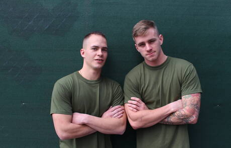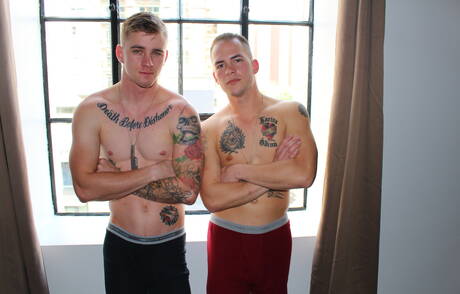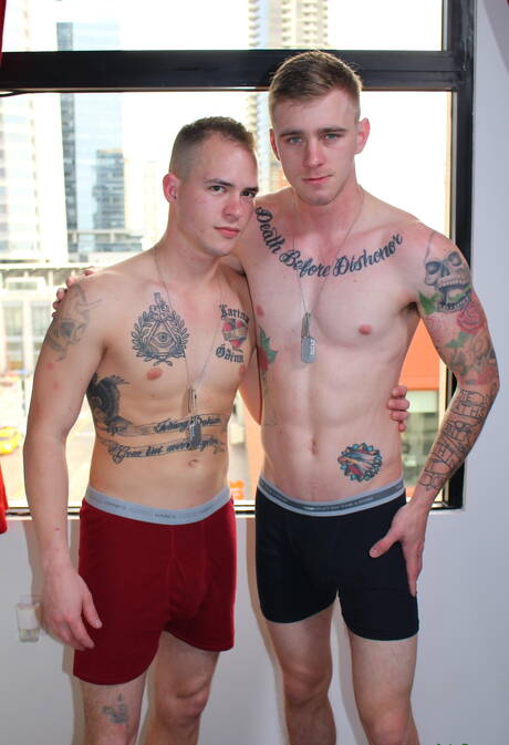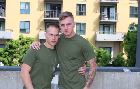 Hot american guys beautiful boy Ryan Jordan and beefy Richard Buldger fuck ass after sucking cock outdoor