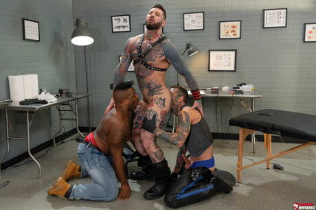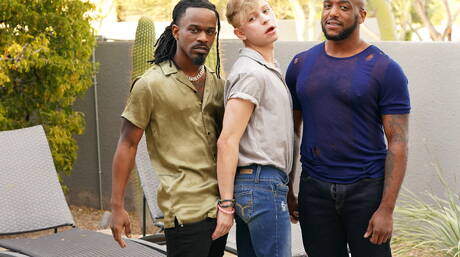 Hot boysDaniel Hausser, Fame and Micah Martinez in hot interracial groupsex outside