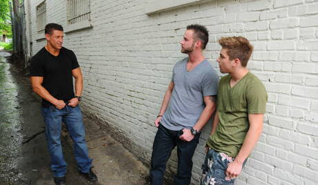 Hot boysJohnny Rapid, Bryce Evans and Chris Bines sucking and screwing each other outdoor
