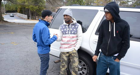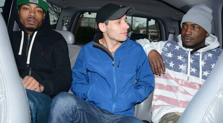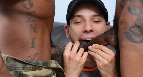 Hot guys Cody Jameson, Phoenix and Tru in threesome interracial fuck scene outside