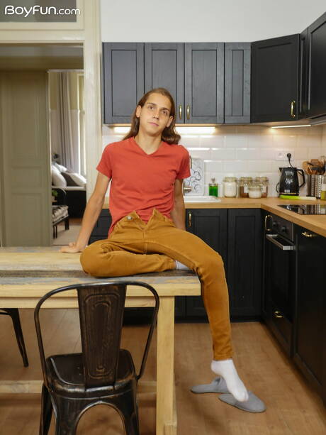 Hot twink Jake Olsen posing nude in kitchen