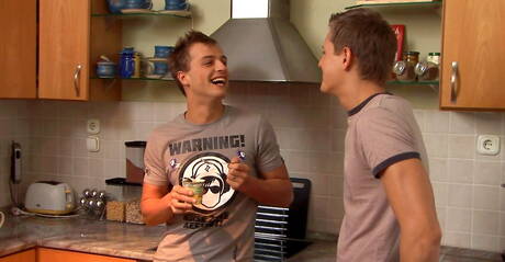 Hungarian husky guy Florian Nemec and czech pretty boy Harris Hilton in hot anal sex in the kitchen