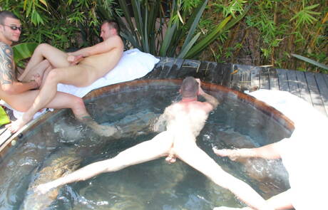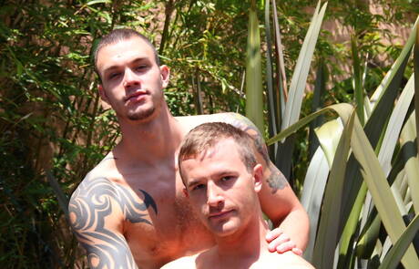 Hunk JCameron Adams and sexy gays doing blowjob in pool