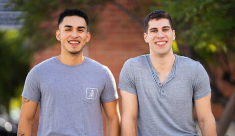 Hunky guy Angelo and beefcake Jesse sucking and screwing each other outdoor