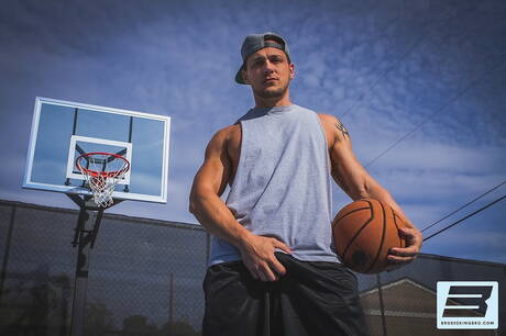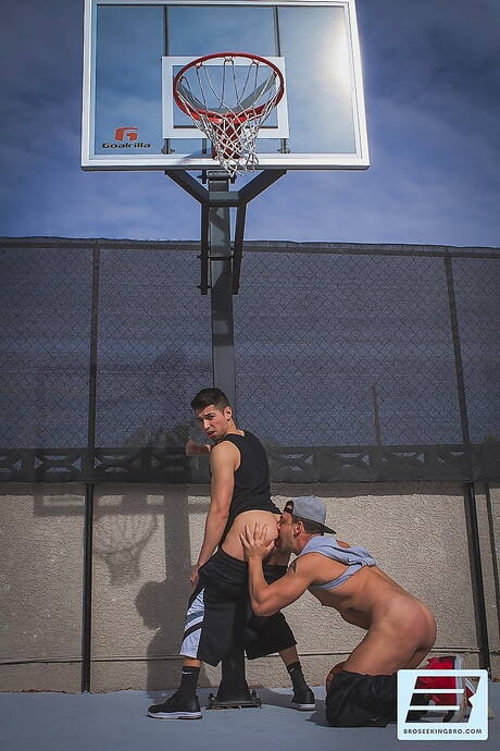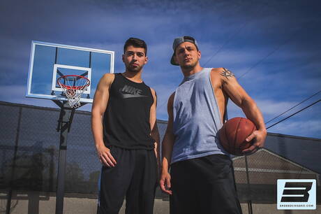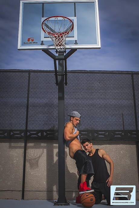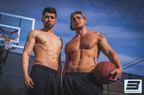 Husky guy Joey D and american strongman Brett Dylan in hot homosexual action outside