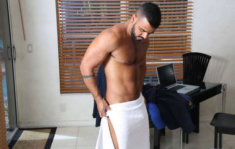 Latin beefcake Tony Orion get naked and showing hot butt