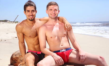 Latin hunk Diego Sans and american hairy stud Jack Radley make a love on the beach