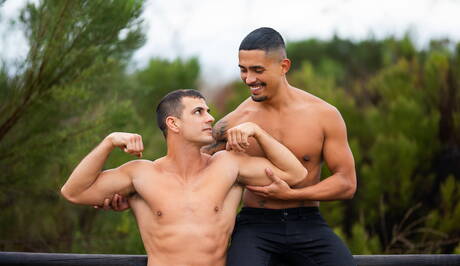 Latino beefy Ricky Donovan and beefy Lachlan in hot ass fuck action outside