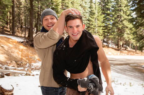 Nasty buddies Joey, Brodie and Lane in hot threesome anal sex outside