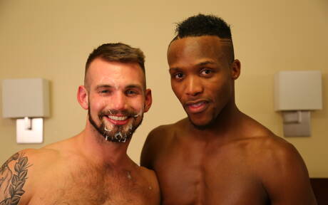 Nice american boys hunky guy Alex Mecum and strongman Noah Donovan in hot interracial ass bang