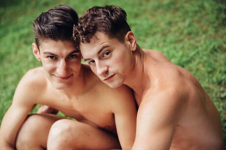 Nice american boys muscular Aiden Ward and husky guy Taylor Reign drilling an ass outdoor
