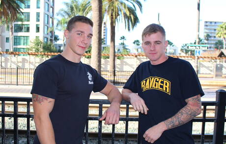 Nice american boys young dude Ryan Jordan and strongman Spencer Laval in hard anal sex outdoor