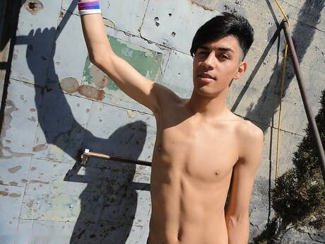 Nice Kennet posing naked and showing tight ass outside