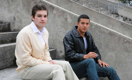 Pretty american boys superstud Joey Rico and beefy Johnny Rapid sucking and screwing each other in bathroom