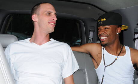 Pretty boy Mister Buck and young dude Pee Wee fuck after interracial dick sucking outside