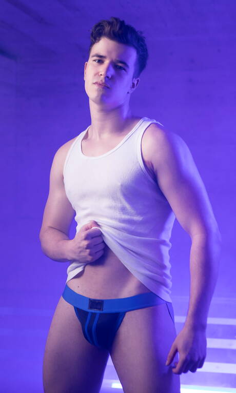 Sensual buddy Dex Westin and beautiful boy Steve Maverick teasing with dildo