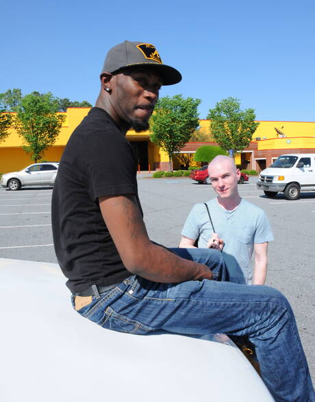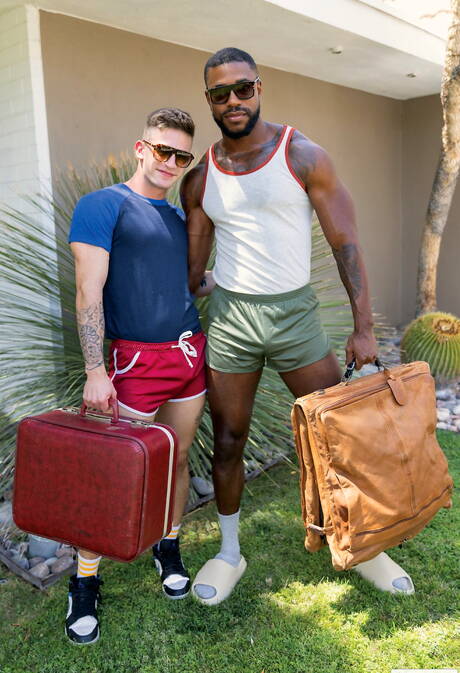 Sensual guy Bradley Wood and hot stud Zodiac in interracial bang outdoor