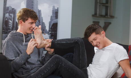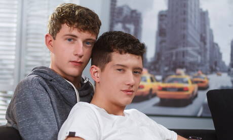 Sexy americans, husky guy Tyler Hill and twink Cameron Parks have anal sex