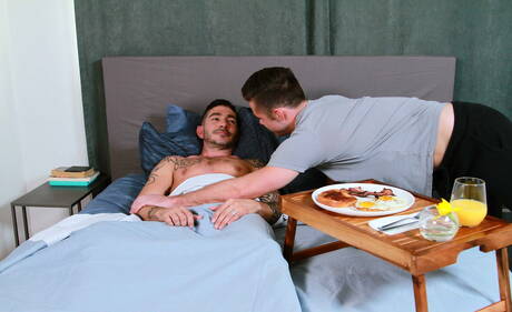 Sexy americans, muscular Johnny Hazzard and otter Mike De Marko fuck ass after blowjob