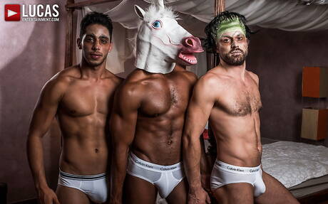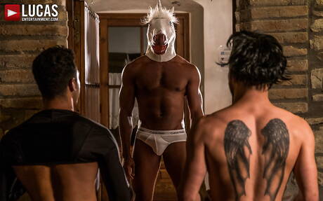 Sexy boys Drae Axtell, James Castle and Sean Xavier in hot interracial 3some ass bang