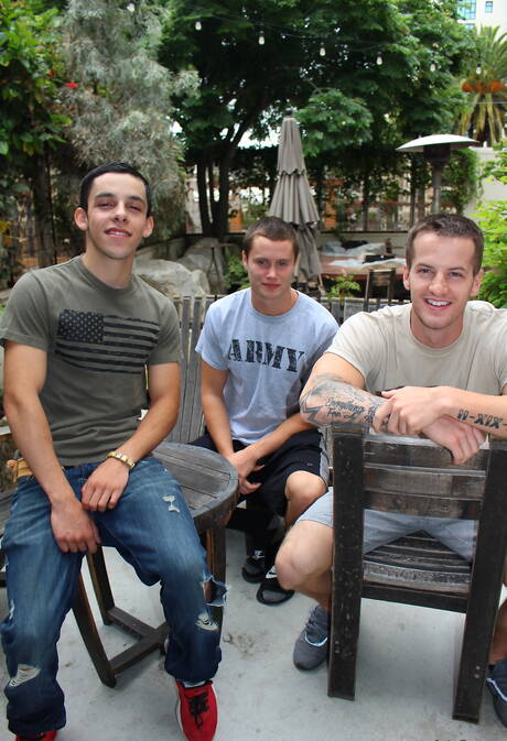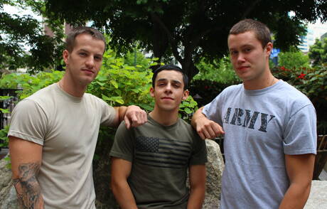 Sexy Quentin Gainz, Billie Starz and Damien Nichols have a good 3some sex outside
