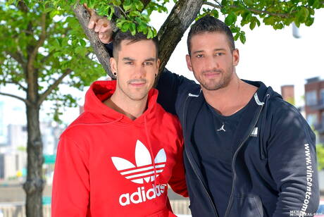 Sexy stud Felix Brazeau and sensual dude Christian Power have a good sex outdoor