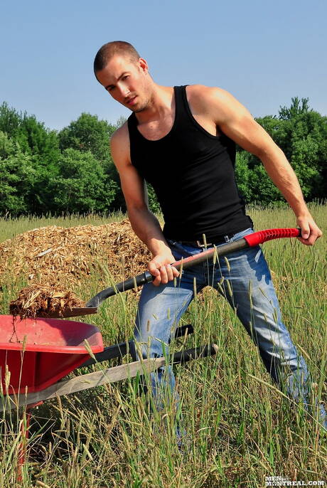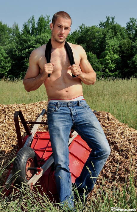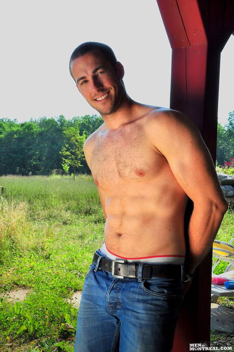 Strongman Alexi Auclair posing naked and showing nice butt outdoor