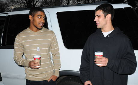 Strongman Blaze and muscular Xl in black on white anal sex outside