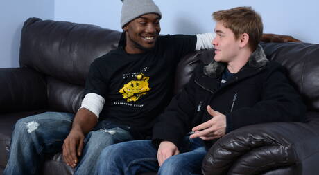 Stud Justin Cross and muscular Phoenix fuck interracial ass after sucking cock