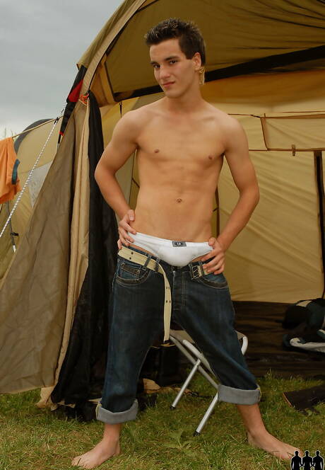 Twink Divko posing naked and showing his butt outdoor