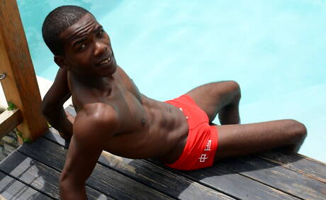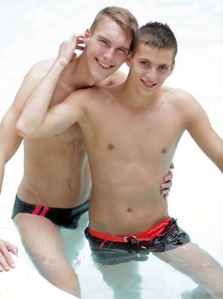 Twink Jake Olsen posing naked at pool