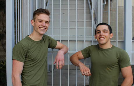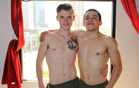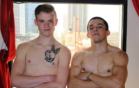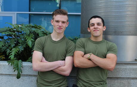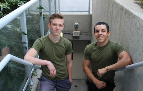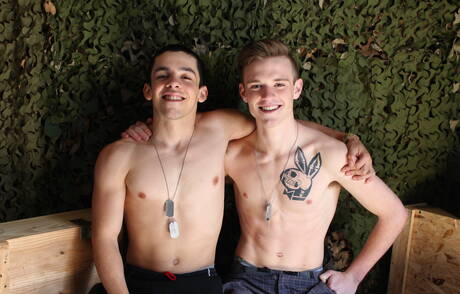 Two american guys beefcake Scott Finn and beefy Billie Starz have a hot sex outside