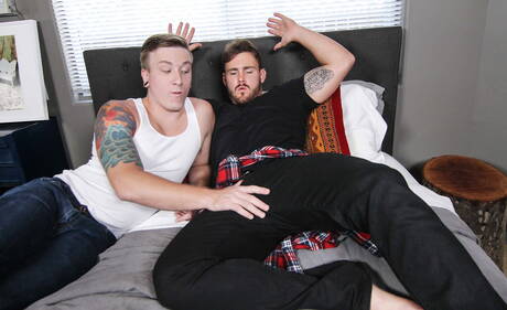 Two american guys beefcake Tom Faulk and husky guy Trevor Long have a good anal sex