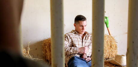 Two american guys beefcake Trevor Laster and hunk Spencer Laval sucking and screwing each other outdoor