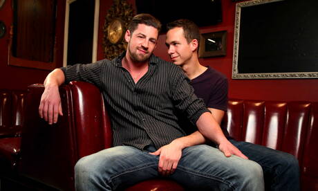 Two american guys hunk Andrew Stark and young dude Garrett Cooper fuck after dick sucking